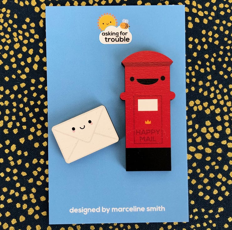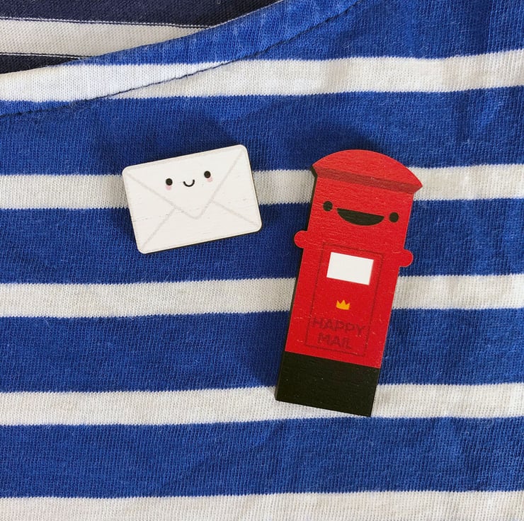 These kawaii Postbox & Envelope pins or brooches are perfect for pen pals, mail swaps, snail mail, post enthusiasts and anyone who loves getting things through the mail. Choose the classic British-style Postbox or make it a set with a happy letter in an envelope.