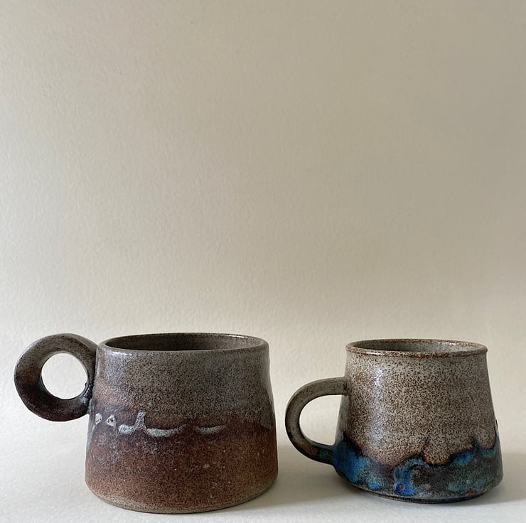 Both cups are made on my pottery wheel with a warm speckled stoneware clay.