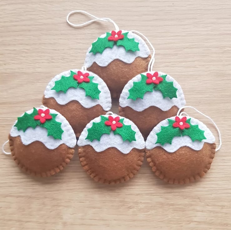 A soft felt hand stitched Christmas pudding hanging decoration.