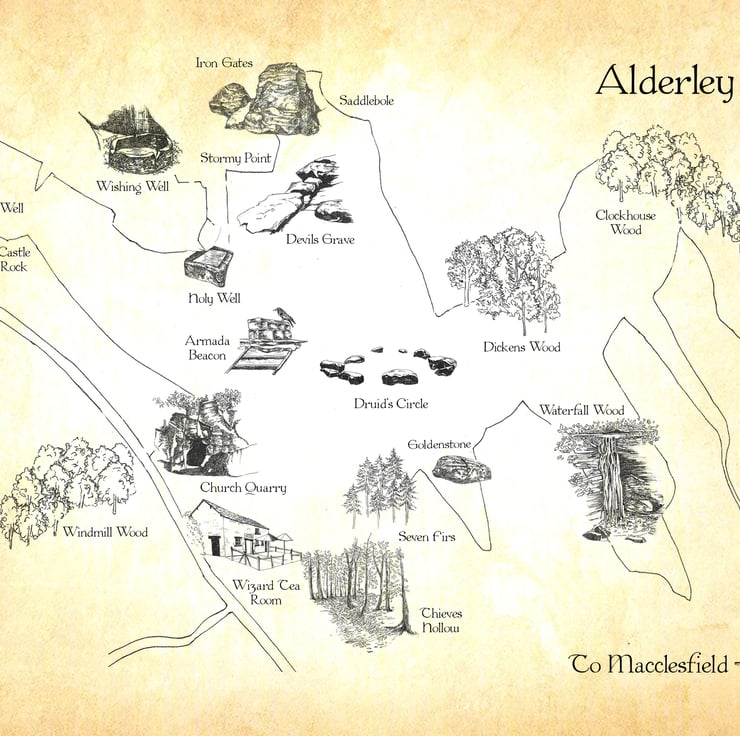 The map of Alderley Edge is inspired by the work of local Cheshire author, Alan Garner.