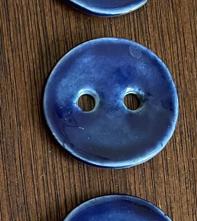Each porcelain button is individually handmade and after the first firing it is smoothed and refined by sanding. It is then glazed all over before place on a jewellery rack and fired again to a top temperature of 1260c in an electric kiln.