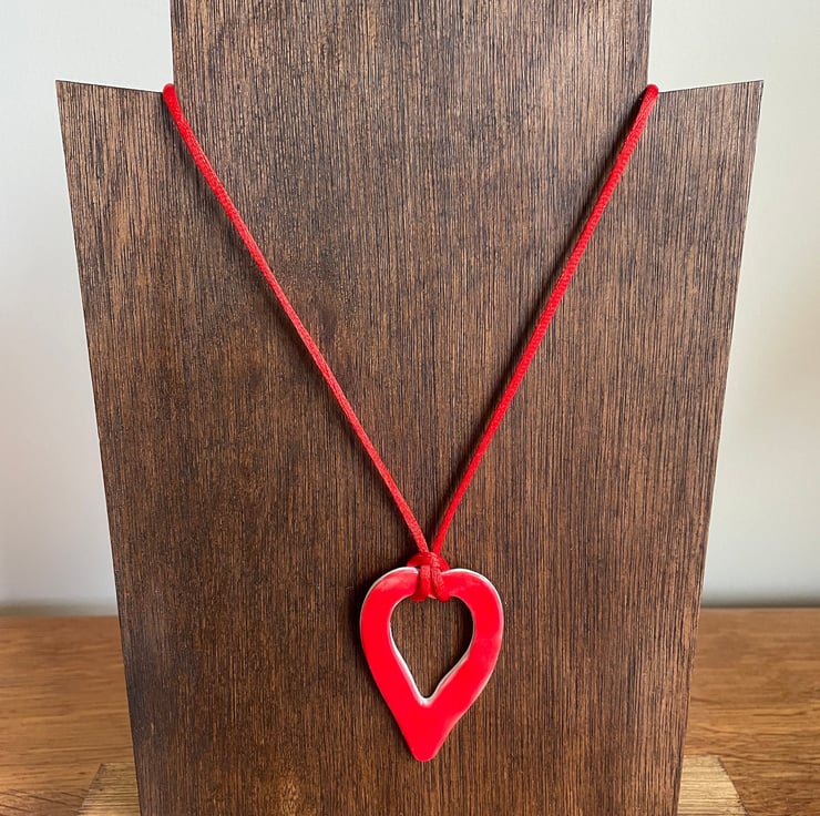 Red heart-shaped - large: 5.7 cm H x 4 cm W: Red Rattail satin cord length - 51 cm