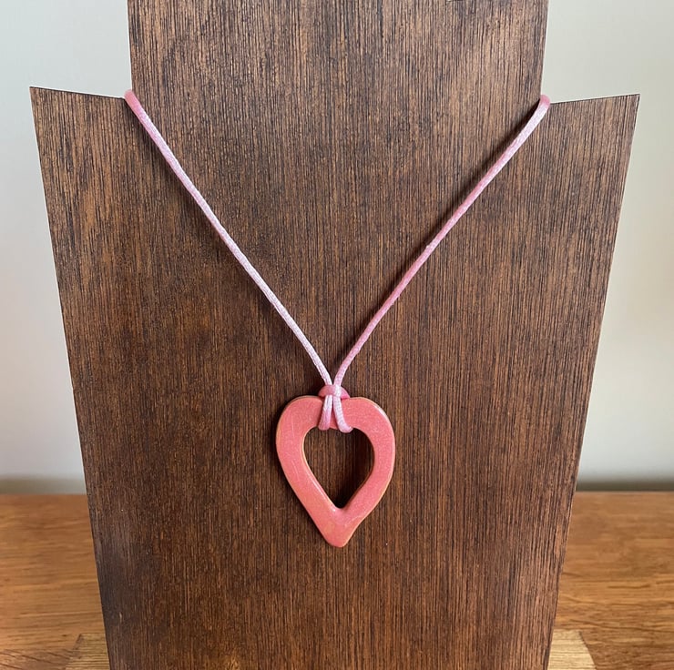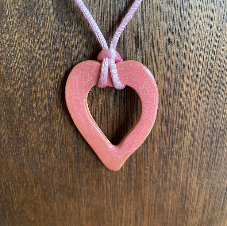 Pink heart-shaped - large: 5.5 cm H x 3.7 cm W: Pale pink Rattail satin cord length - 48 cm