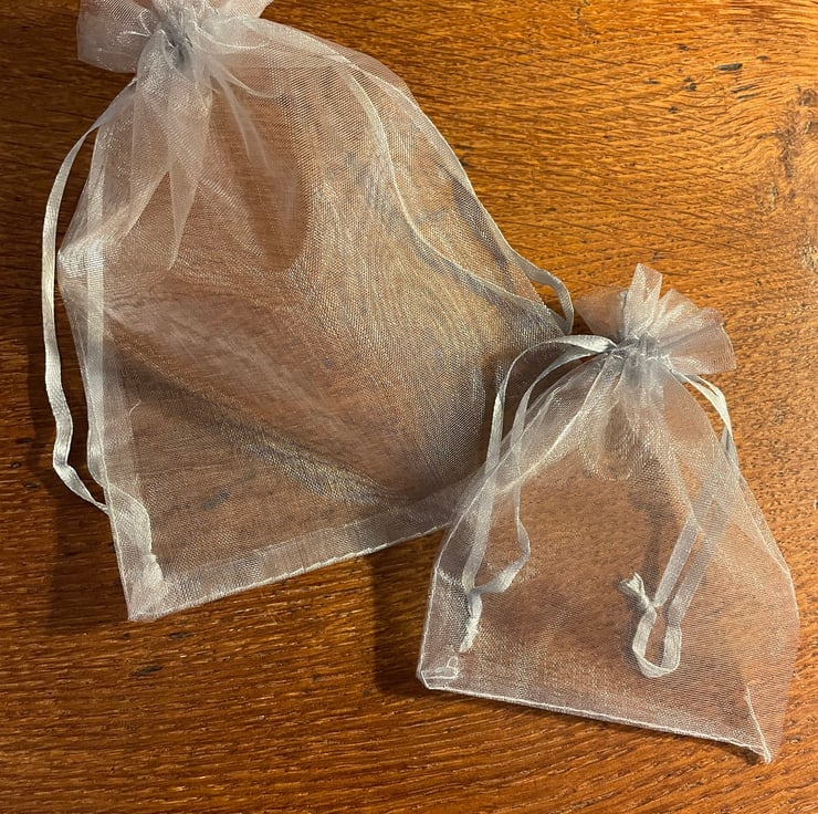 Each ceramic jewellery item arrives in a silver-coloured organza pouch.