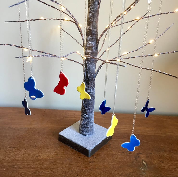 My handmade colourful porcelain butterfly pendants on a sterling silver chain.
