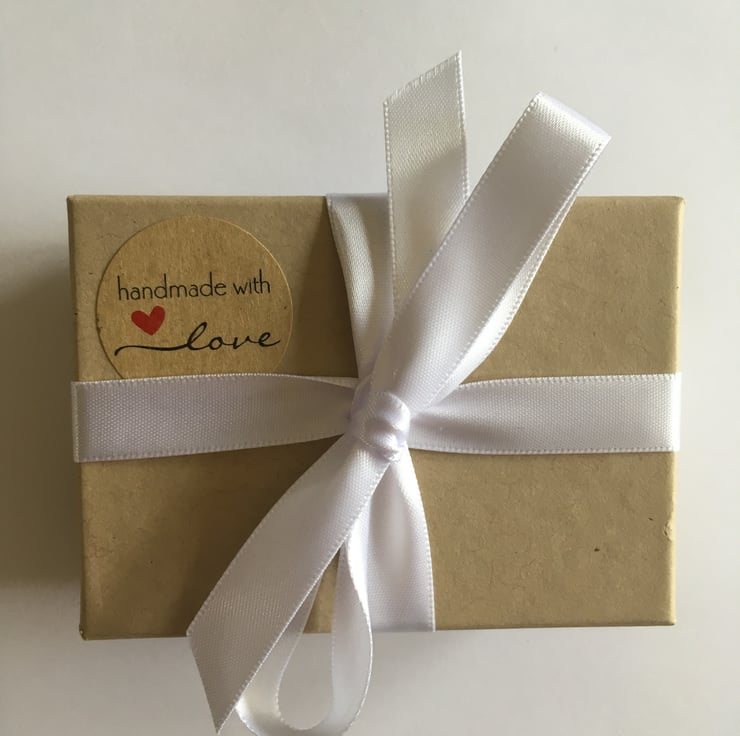 Each jewellery item arrives in a natural-coloured gift box tied with white satin ribbon.