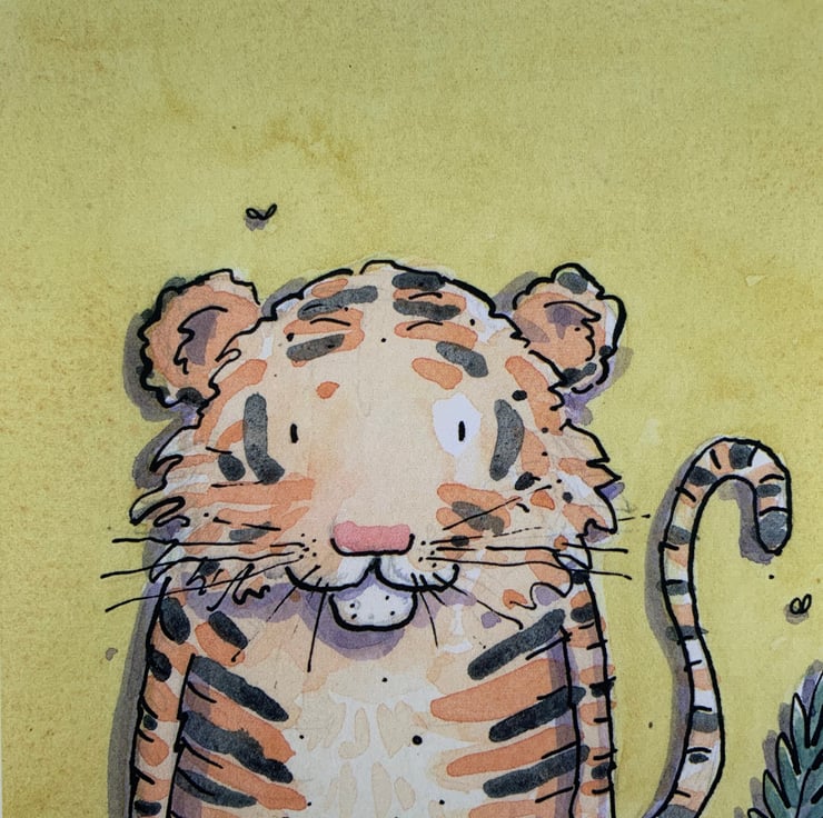 A bright, cheery, happy Tiger card, ideal for a birthday or just to say Hello! A 15 x 15cm card with envelope, blank inside for your own message.