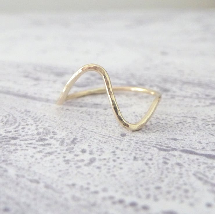 Hand shaped in solid recycled gold, this simple yet elegant ring has a dramatic curve across the front of your finger.