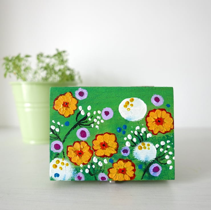 Meadow Pattern Trinket Box for Jewellery Gifts, Wildflowers Acrylic Painting