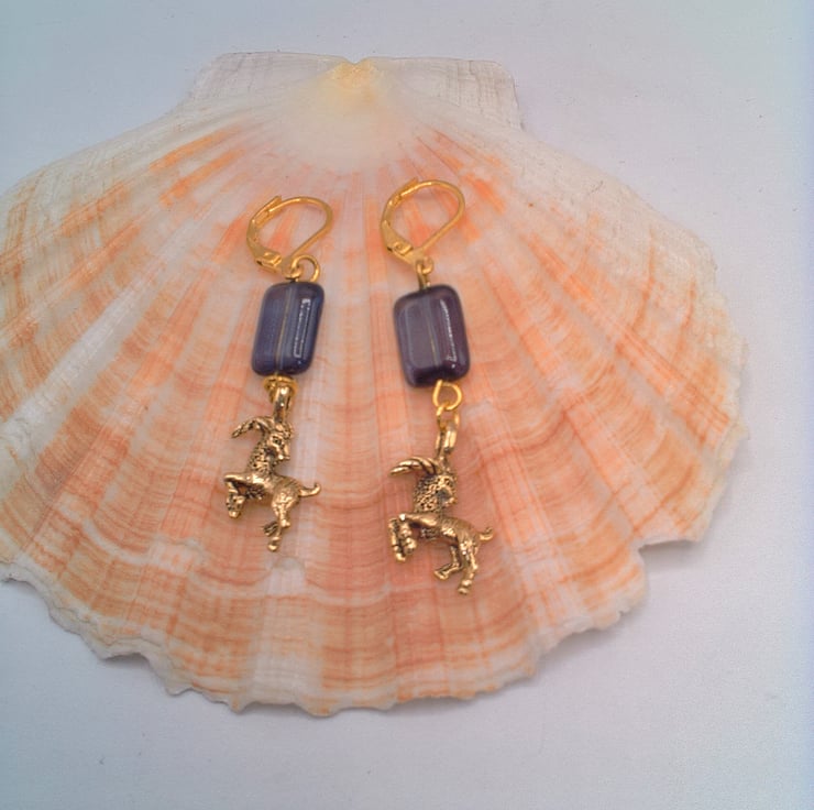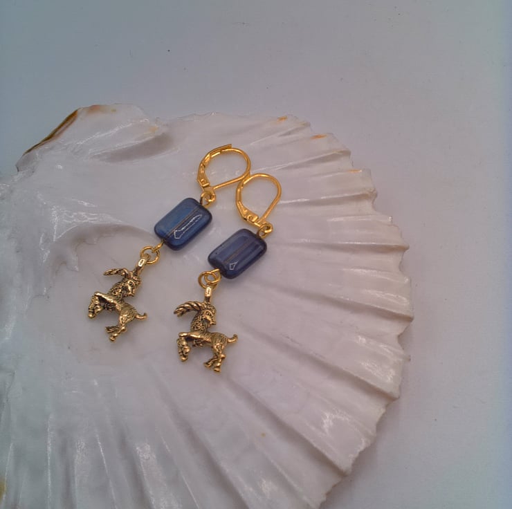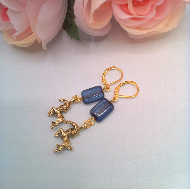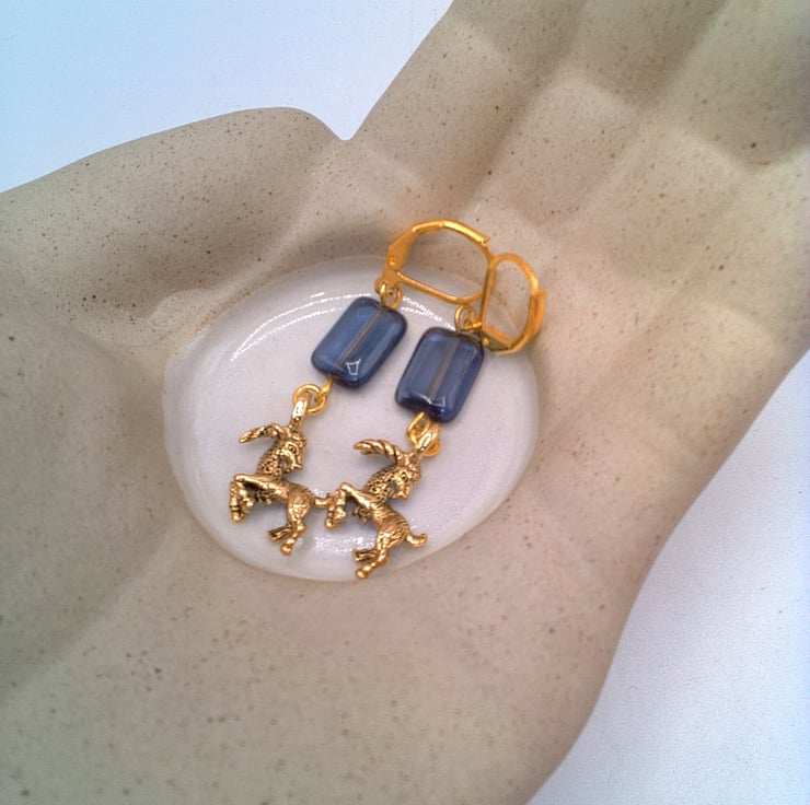 Earrings with a Navy Glass Bead and a Gold Plated Goat Charm, Gift for Her, Valentine's Day Gift, Mother's Day Gift, Anniversary Gift, Earrings for Pierced Ears, Birthday Gift, Gift for Her, Goat Earrings, Navy Blue Earrings, Capricorn Earrings