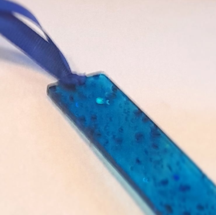 Handmade bookmark - made from blue resin and filled with glitter for that extra little something!