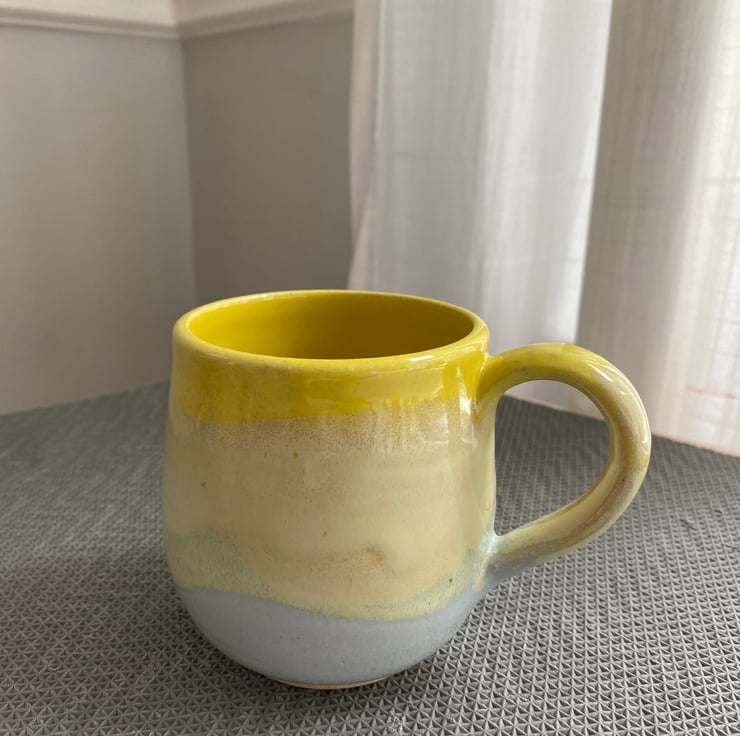 This mug is yellow on the inside and yellow and grey on the outside, perfect to brighten up your kitchen and to enjoy your cup of tea or coffee from.