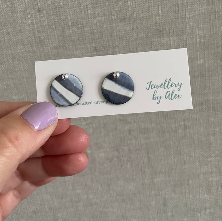 Contemporary silver and enamel earrings, with a 3mm sterling silver stud. The enamel disc is approx 10mm in diameter.