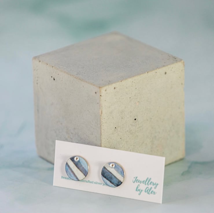 The earrings have been enamelled to create a unique pattern. Due to the way in which the enamel is applied there will be a slight colour variation and no one piece will be exactly the same, making the piece unique to you.