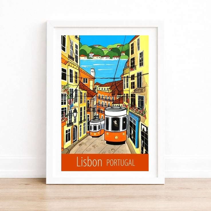 A contemporary travel poster print of Lisbon and its trams, from my own original acrylic painting, created for one of the projects in my "Passport to Painting" book (Published by Search Press). A perfect gift for those who love visiting Lisbon!