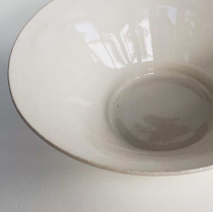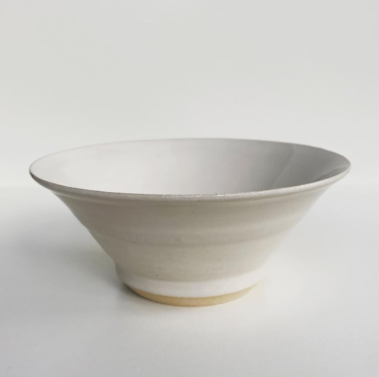 A small bowl with flared sides in a simple white glossy glaze.