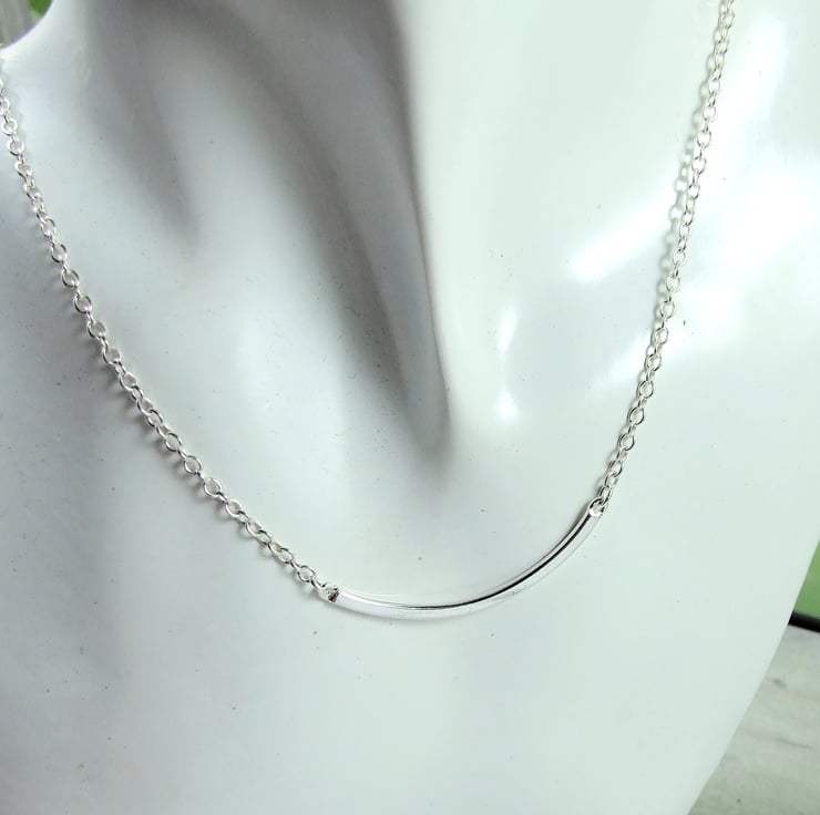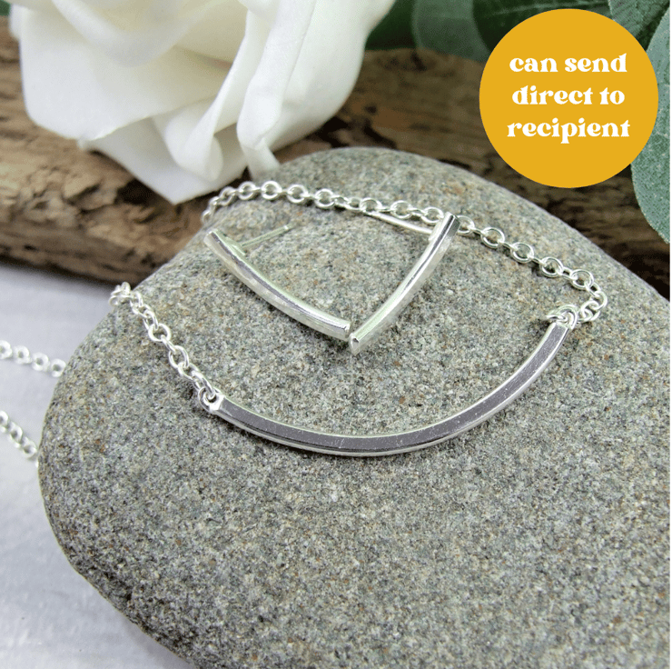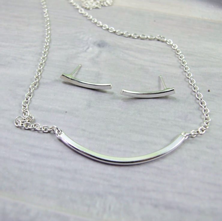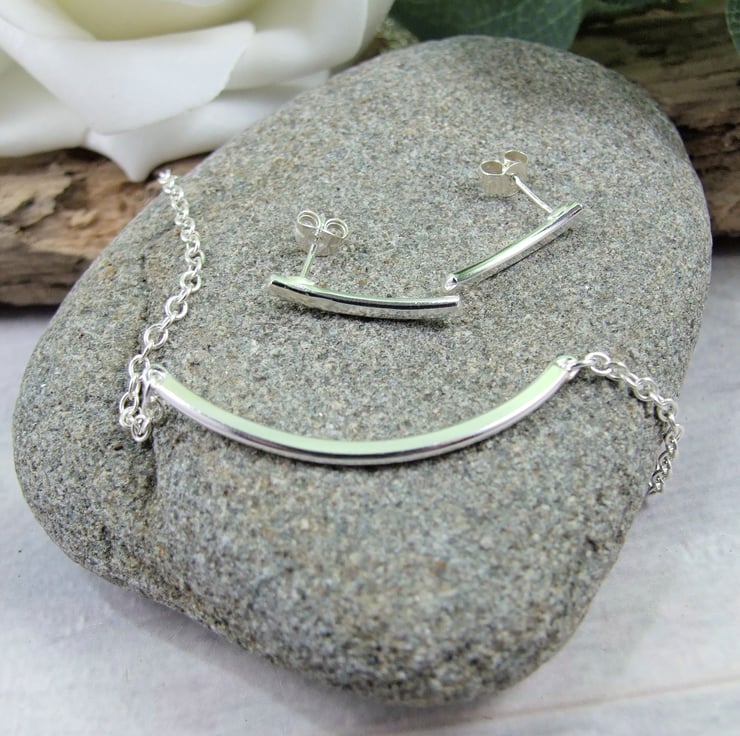 Recycled Silver Curved Bar Pendant and Earring Set. Sterling Silver and Recycled Silver handcrafted jewellery set.