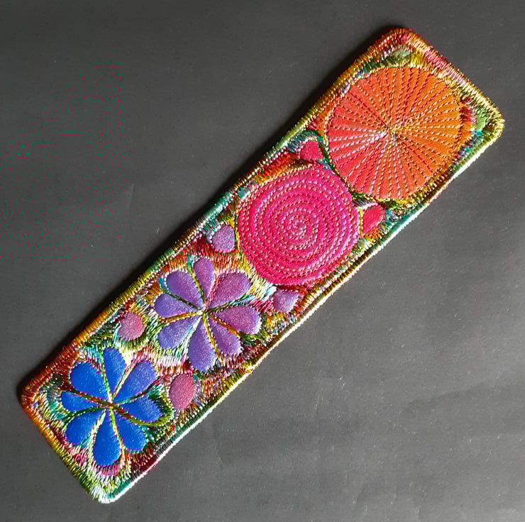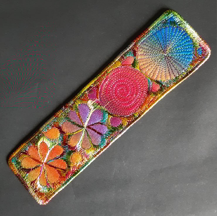 Made from layers of fabric including hand dyed Egyptian cotton and silk fabrics using the free machine embroidery style of sewing