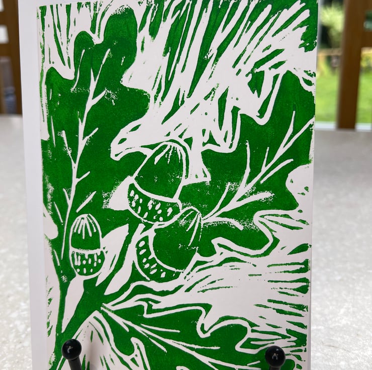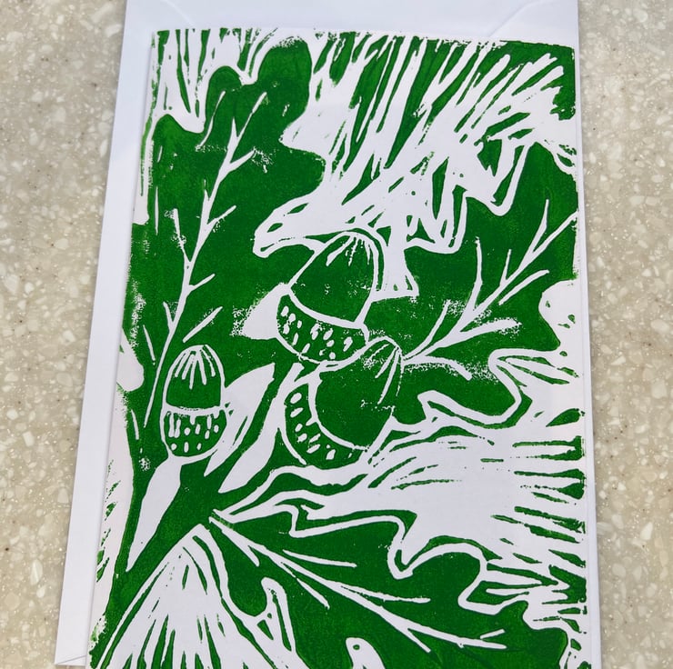 Individual hand printed from Lino cut greetings card. Blank inside for your own message. Each card comes in a cellophane packet with an envelope. Each card is unique, I call it perfectly imperfect, as you never really know how each print will turn out until you lift the card from the lino. £0.50 from each card sale will be donated to Ovacome.