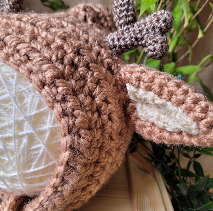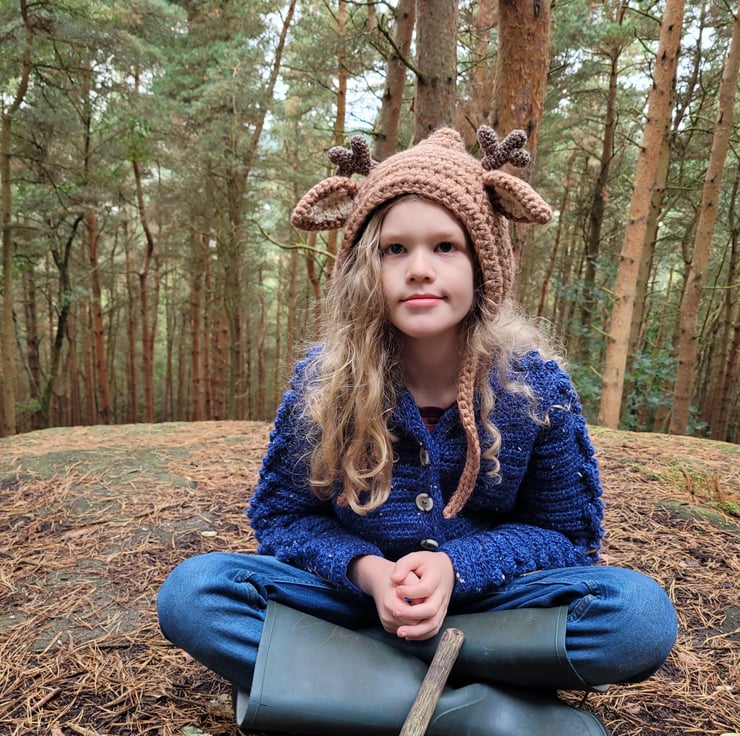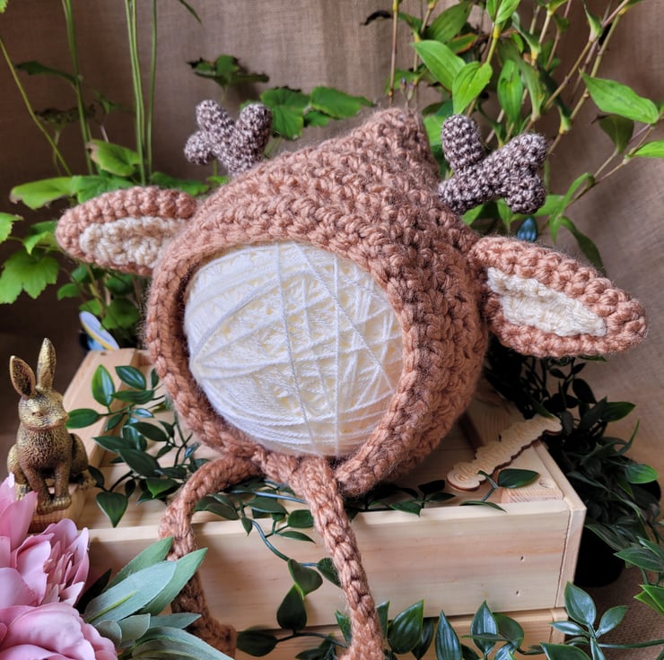 Handmade crocheted stag bonnet.