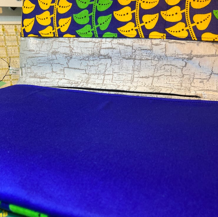 I wanted to use this vibrant cotton for something that is usually a dull item! What better than to reach for a colourful and tactile laptop cozy to make you feel positive. There will not be another one like it that is for sure. I bought this fabric in La Gomera a couple of years ago and have got quite attached to it.