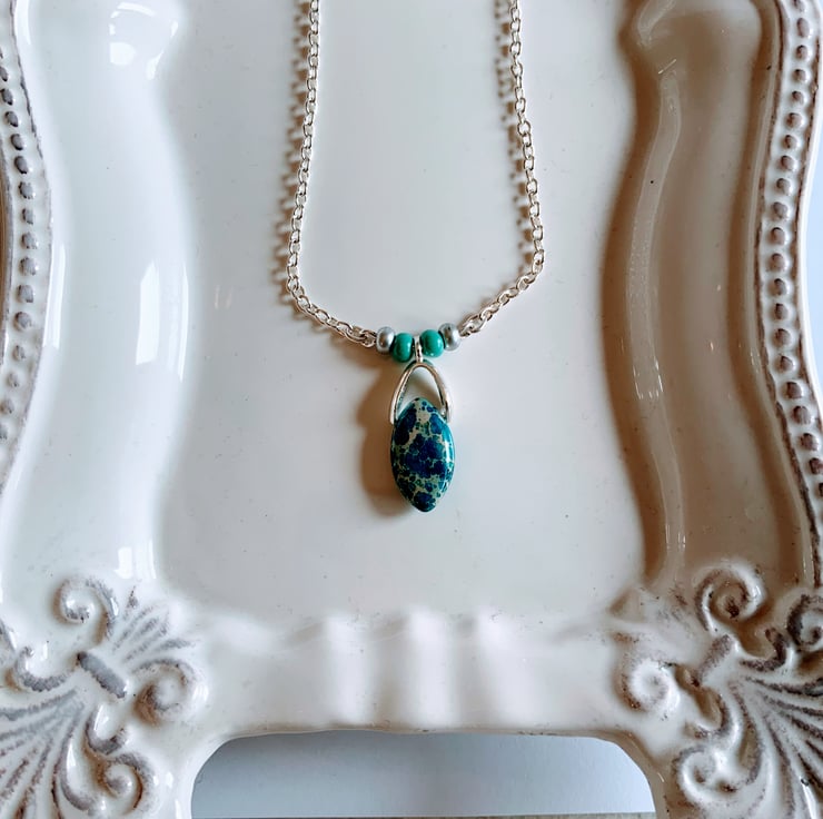 Imperial Jasper Marquise Bead Pendant centred between complementary rochelles.