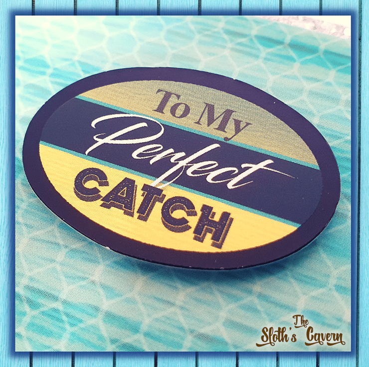 A small matching topper with the sentiment "To My Perfect Catch" decorates the top right corner. The card is embellished with self-adhesive craft gems, in a light blue shade.