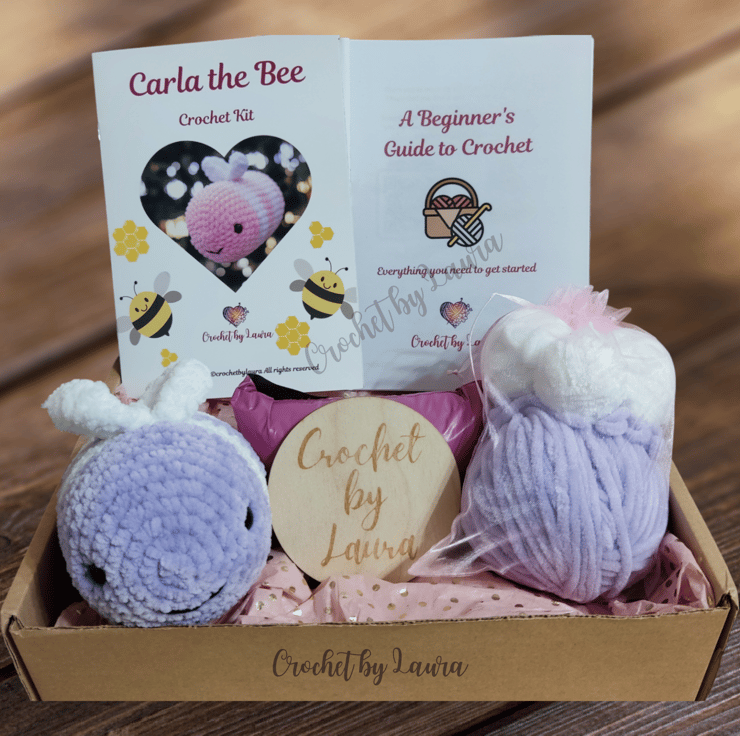 I wanted to make a crochet kit that was designed for beginners. Which had everything that they would need in order to make a finished toy. I decided on a bee as they are easy shape to make and using chenille yarn they are adorably soft and squishy.