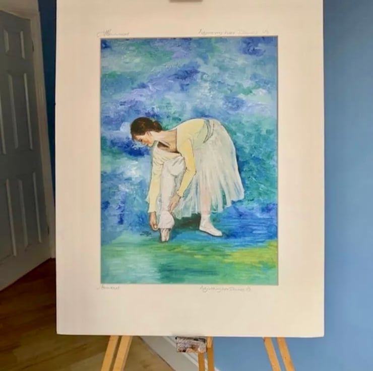 I love ballet and thought this painting was a different viewpoint. The owner of the original is in Amercia. I had 3 reprints made and this is the final reprint