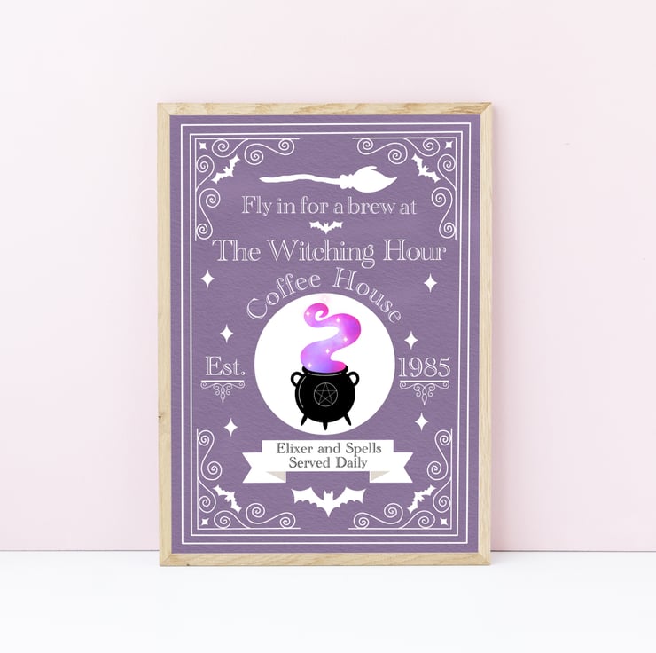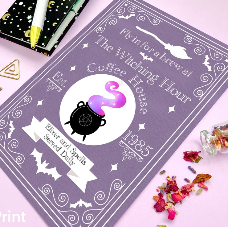 Add some witchy vibes to your kitchen decor with this spooky themed coffee house print.
