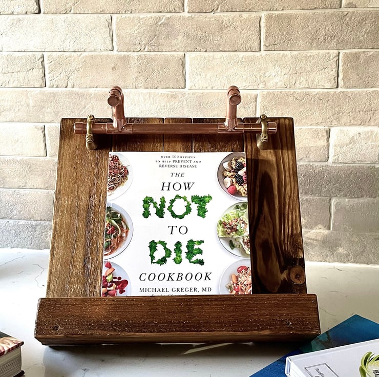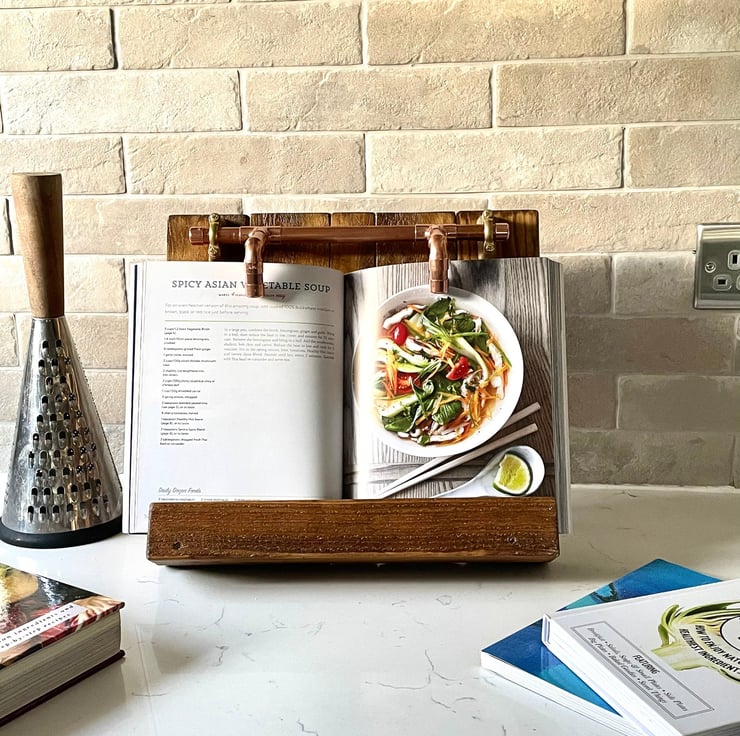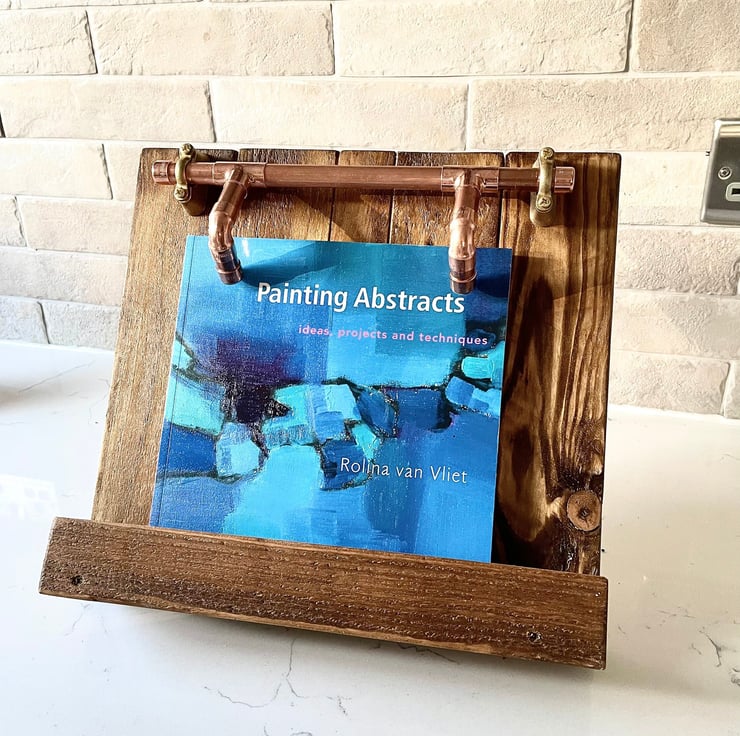 Another Cookbook Stand we make pictured here. Its an amazing piece and vamps up your kitchen to a real Wow factor! This is pretty cute and its definitely something your guests will be eying up, so hey all you Great British Bakers and Cooks! Get those recipes displayed and get creating! Itll also hold your Hi Tech Tablet at the perfect angle too.