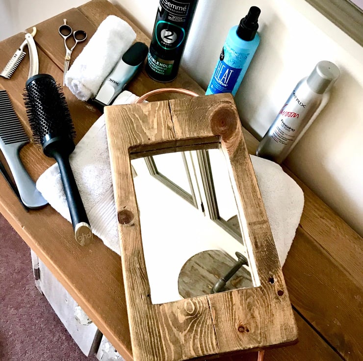 So, I only know too well how limited we are for choice with hairdressers back view mirrors. They're usually plastic and look a bit basic and boring. So here was a perfect opportunity to design and create one using our fabulous timber. It's a winner!