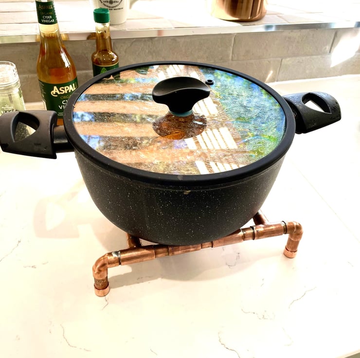 So lets be sure we dont accidentally put that red hot pot on that precious worktop! This copper trivet will hold a very large saucepan, wok or baking dish while youre cracking on with serving up that yummy gourmet dinner.