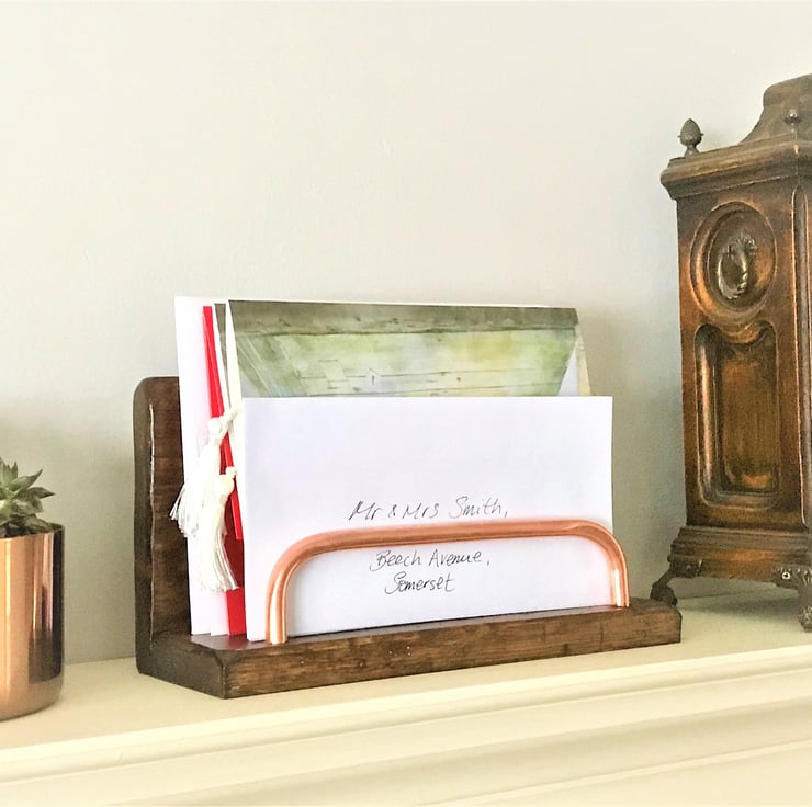In addition to our double design letter rack, we make this smaller single one. This would be more than sufficient for a small shelf with less mail coming through the letter box....