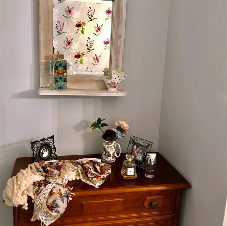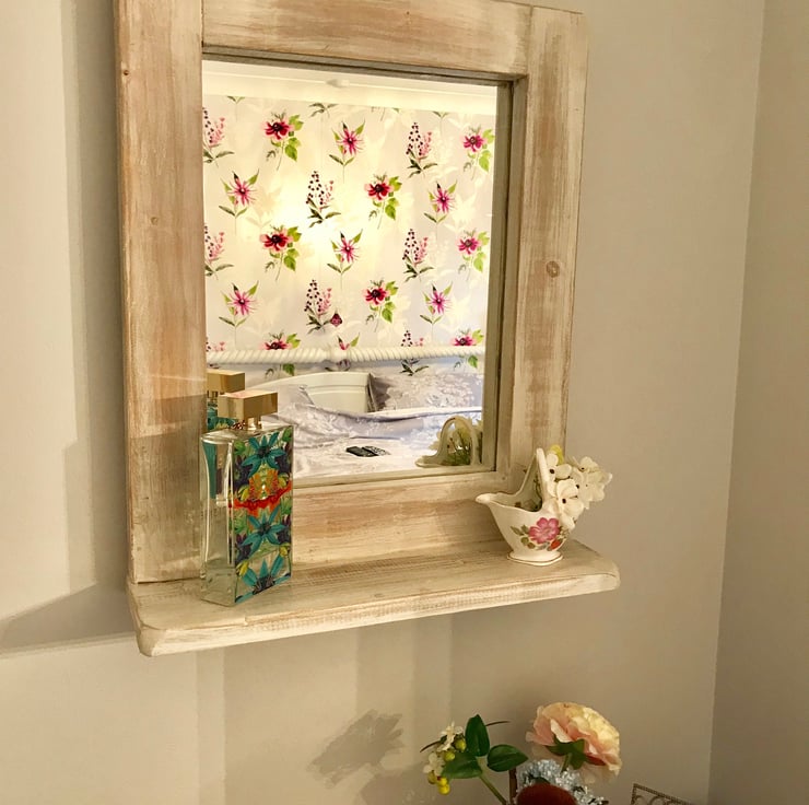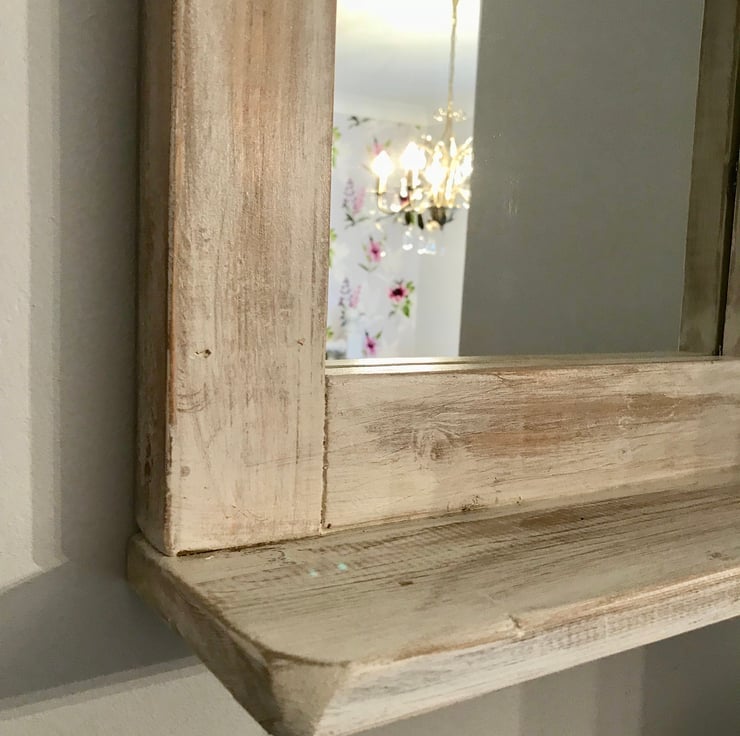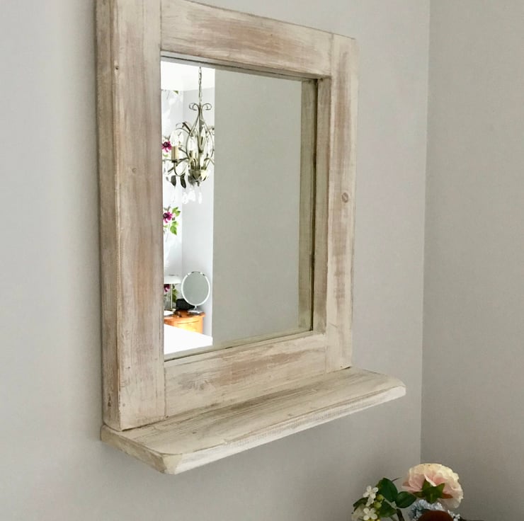 For a more cosy looking mirror, a distressed finish creates that cottage and village culture theme. Add warmth to a cold looking room, with a cute little trinket shelf, or reverse it for a top shelf option. Nice gift from Mum & Dad to Daughter :)