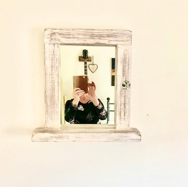 A mirror that resembles a window with a glamourous touch. So cute for a bedroom or en-suite bathroom. Beautiful charming wall hung mirror, timeless..
