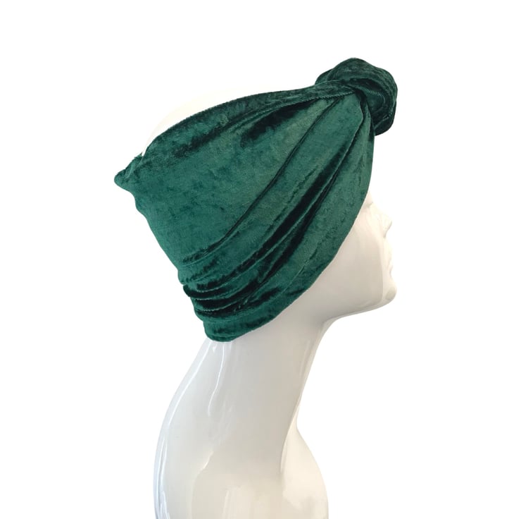 Crafted with care and attention to detail, this headband is made from soft and stretchy crushed velvet fabric in green, ensuring a comfortable fit for all head sizes. The extra width of the band 22cm/9'') offers maximum coverage for your hair, keeping it out of your face and off your neck, while the knotted design adds a trendy touch to any outfit.