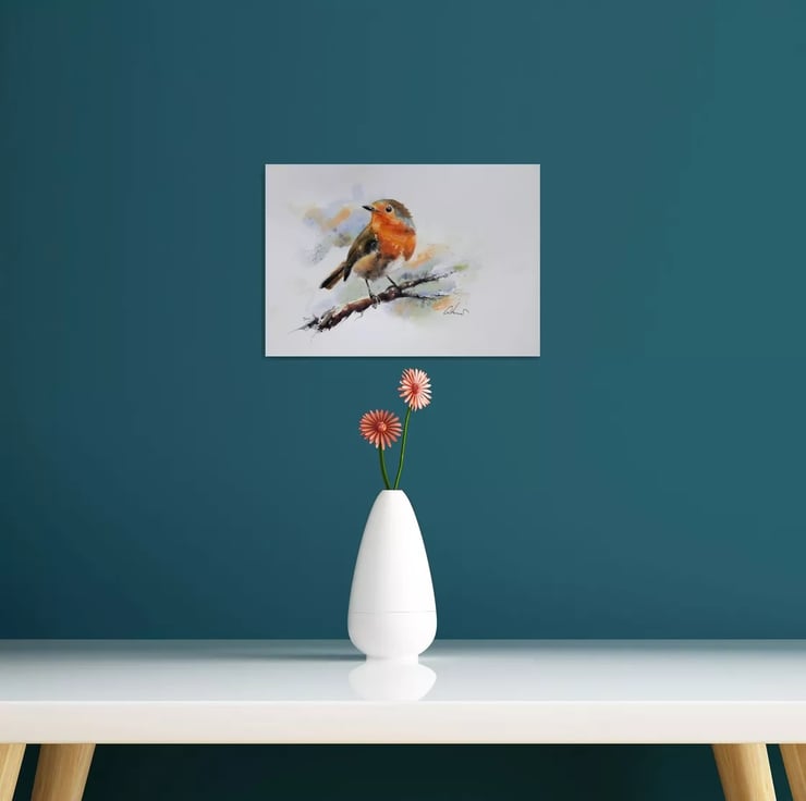 Robin, high quality Giclée Print of my original watercolour painting. A4 size, 21x29cm with an additional 1cm border.