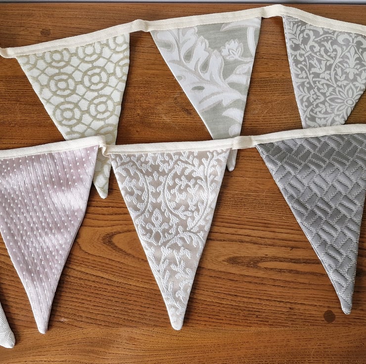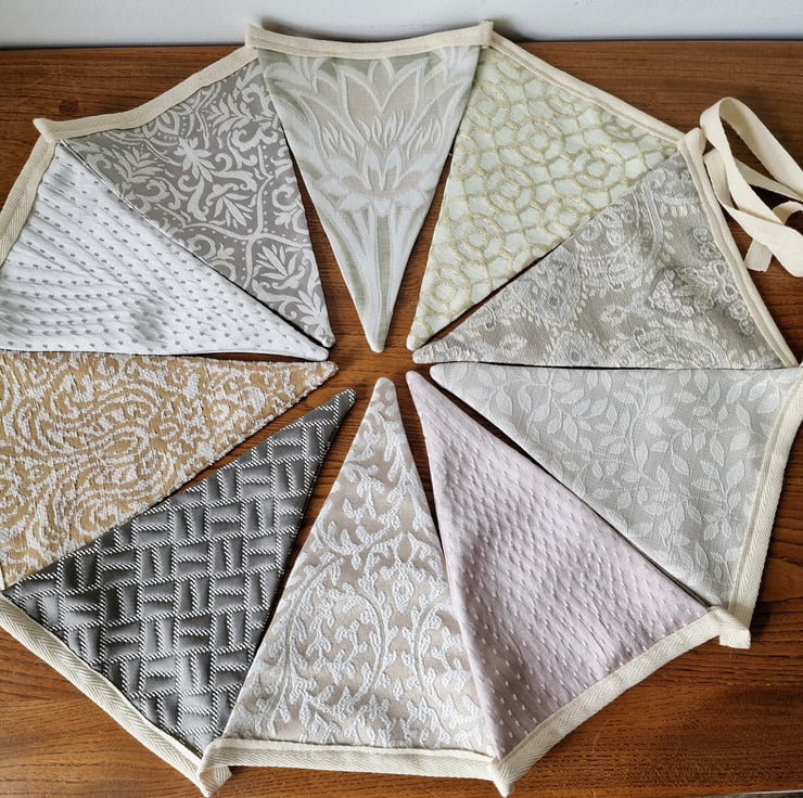 Flags are made from good quality, reclaimed fabrics in subtle tones of greys, pinks, green and ochre.