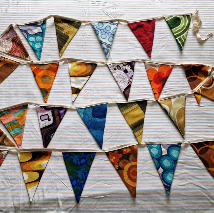 Double-sided bunting(different pattern each side), handmade by myself.