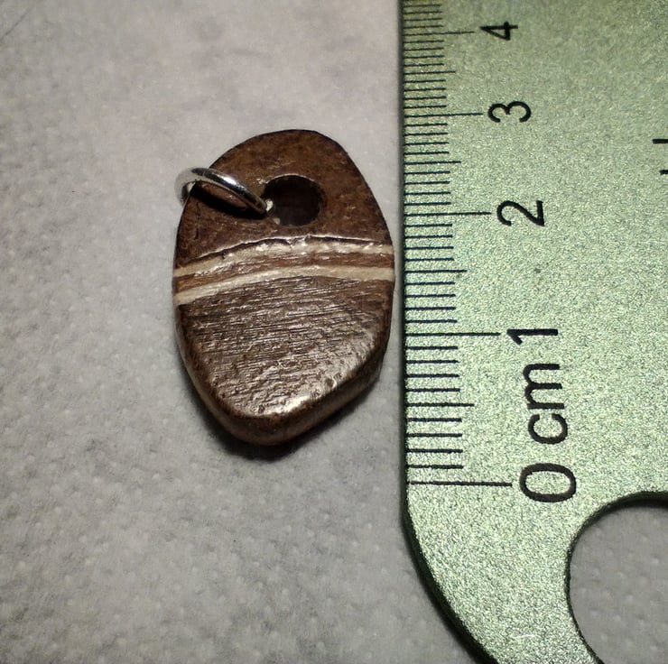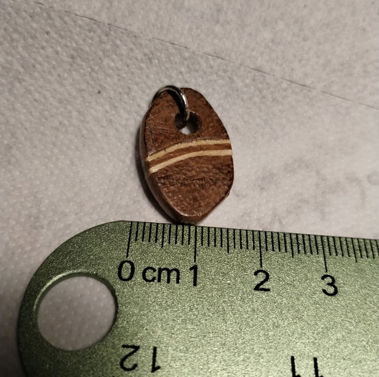 a wooden pendant with atimber strip running through (Number 3 July 2023)