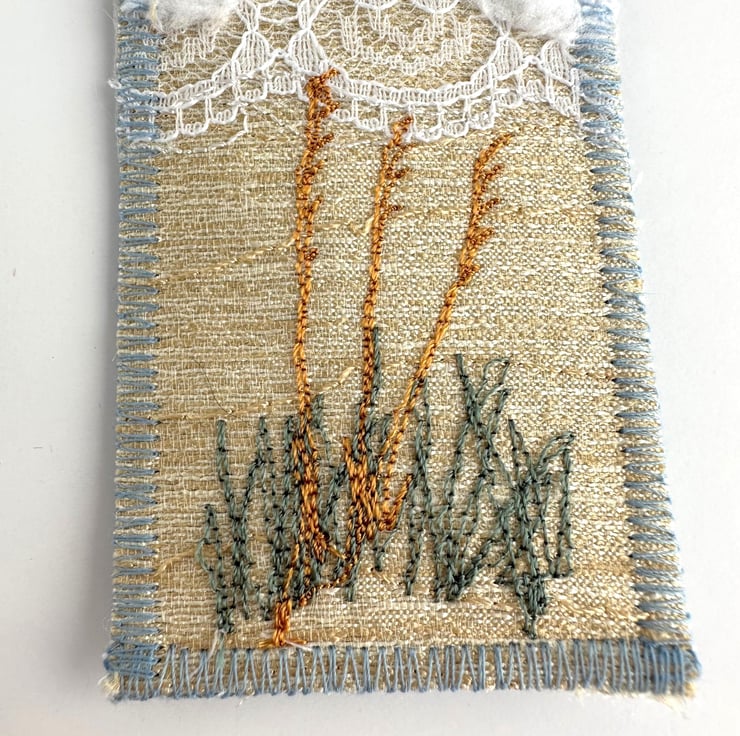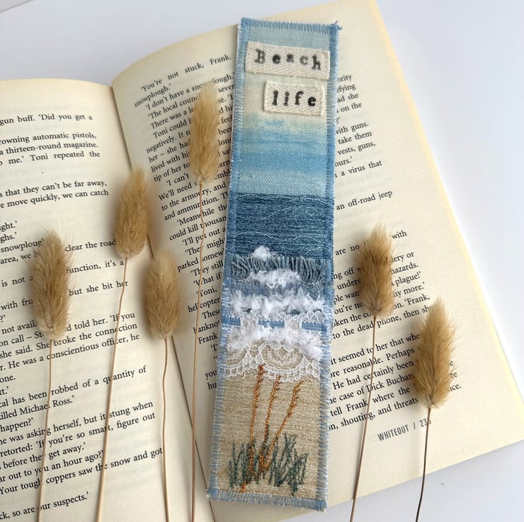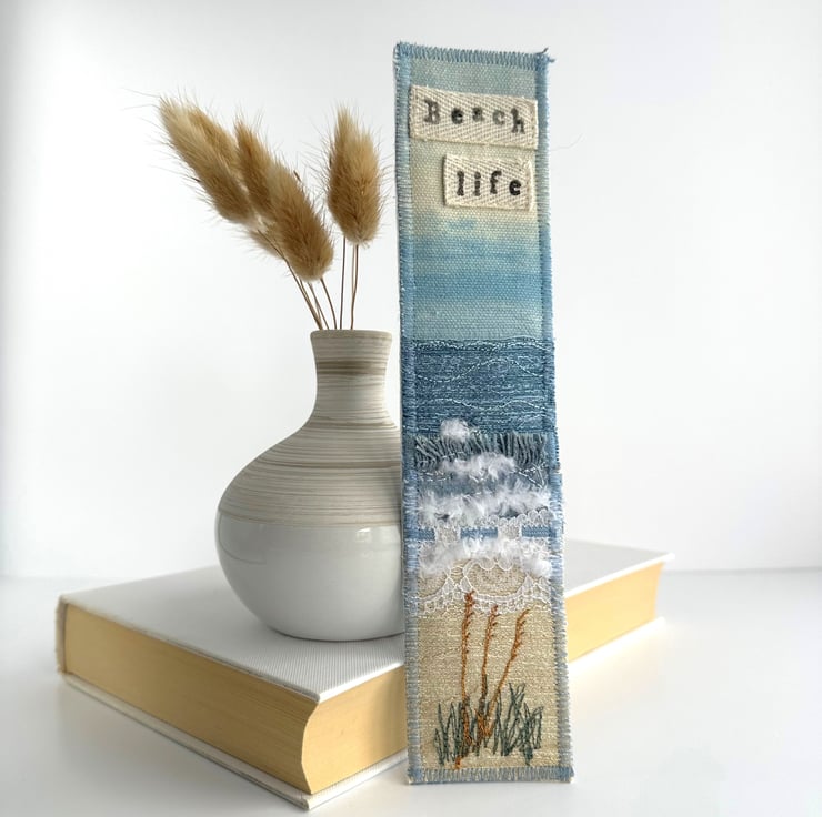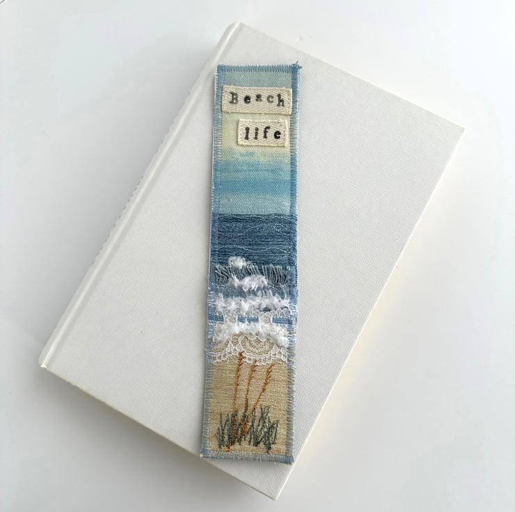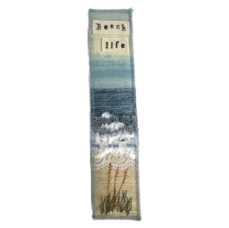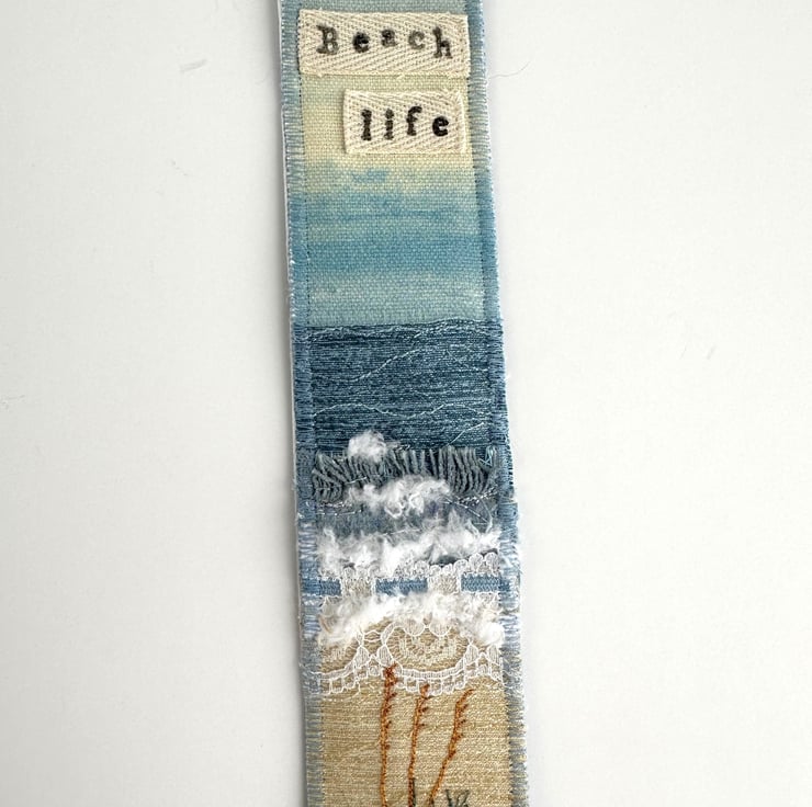 This lovely beach themed bookmark would make the perfect gift for anyone who loves reading and the sea. It is also an inexpensive way to own a piece of original textile art.