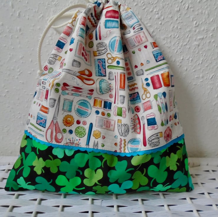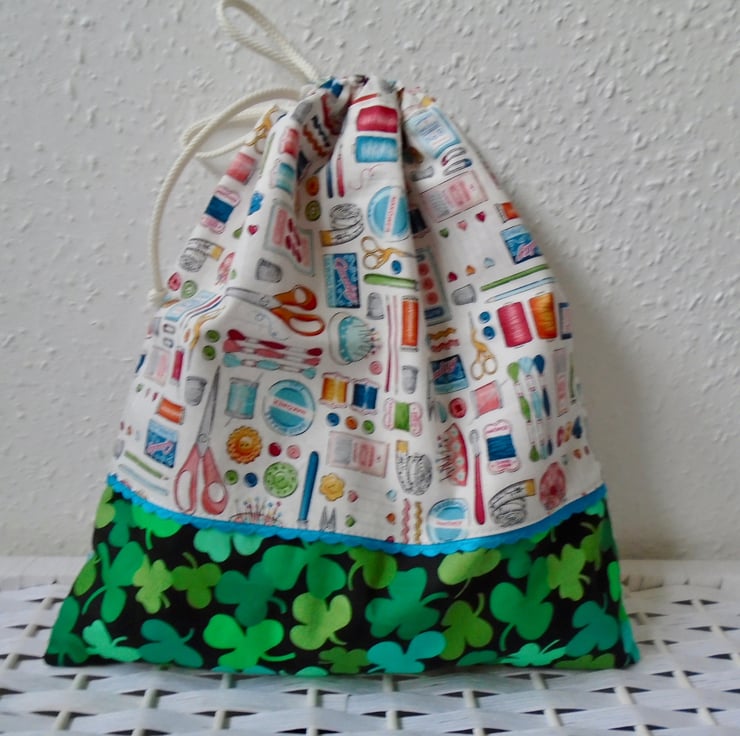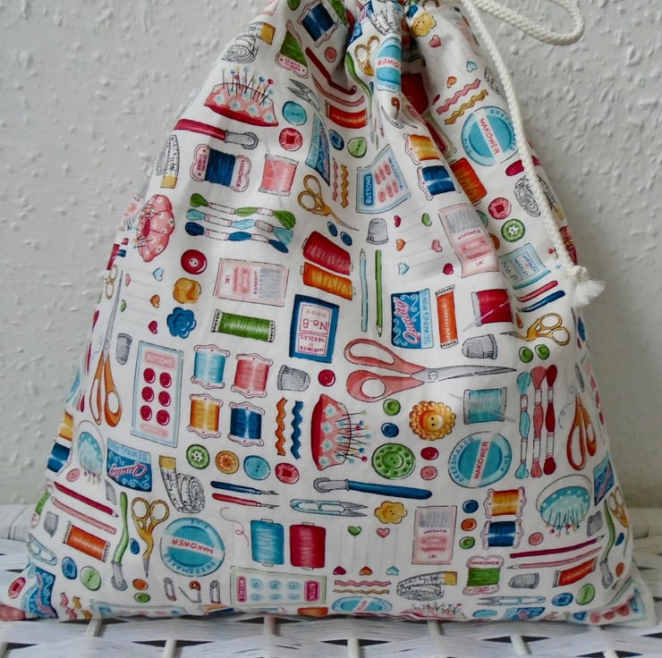 A lovely Drawstring bag , all ready to be used for small craft projects / gift bag / bits & bobs /etc.