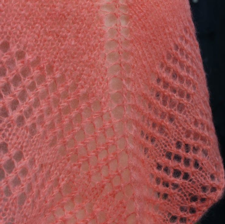 If you would like to see more photographs and read about how this shawl was made please visit my blog post about it. https://drapedinlacebyjuliablakeman.blogspot.com/2019/04/yep-its-another-design-a2-salmon-mohair.html