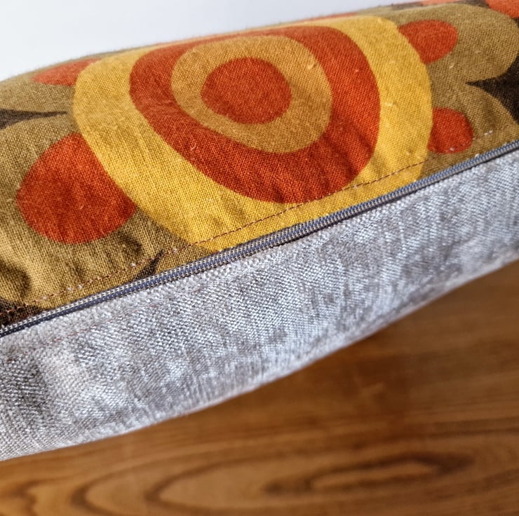 The front panel is cotton, and also lined with cotton, designed by Juliet Glynn Smith for Parkertex Design in 1968.