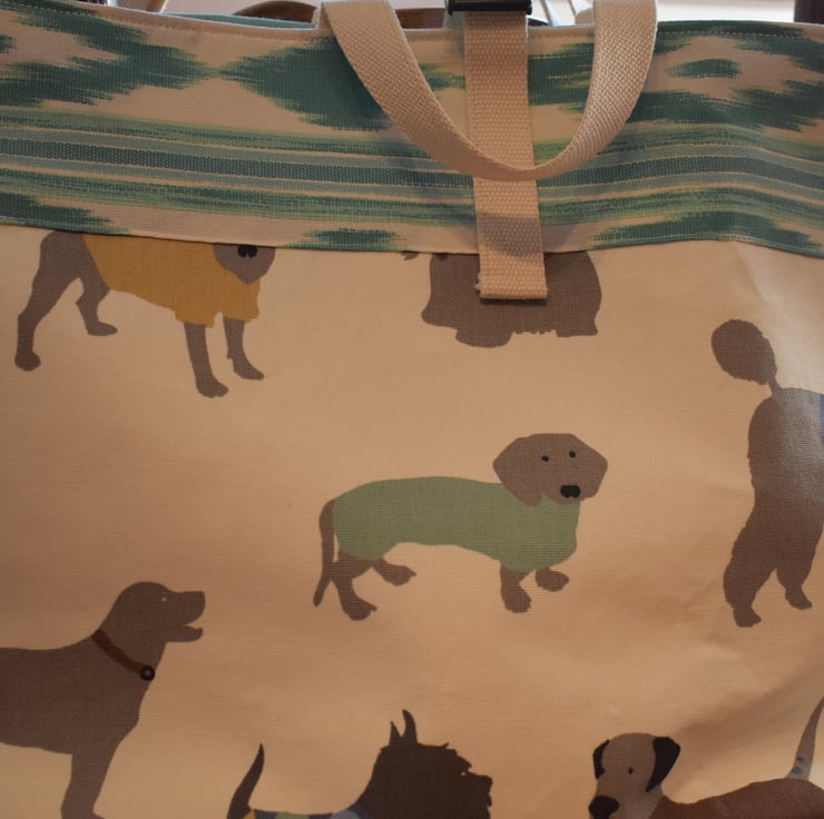 Beautiful big dog print shopping, work or travel tote. Strong Fabrics well sewn.
