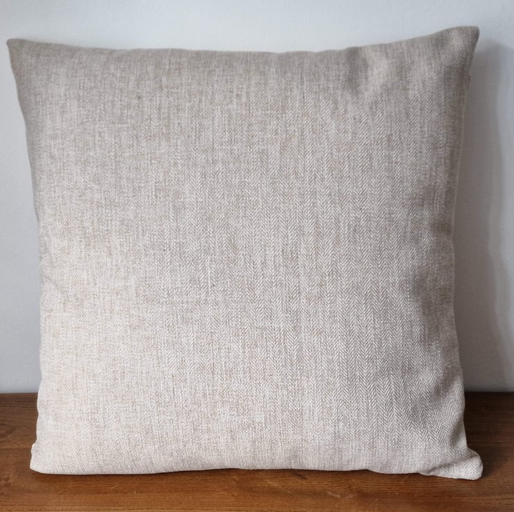 The back fabric is a plain, good quality, beige, herringbone pattern fabric, giving the cushion cover a luxury feel.