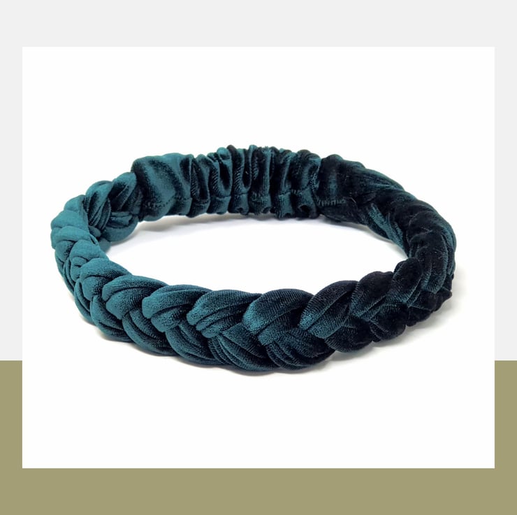 So here we have a gorgeous velvet headband. The quality of this fabric must be seen to be believed. It is super soft and is a rich emerald green colour - one of my most popular braided headbands to date! I only make them in small batches and they are hand finished to perfection. Also available in Gold, Red, Black, Navy, Silver & Pink - please see my store for specific listings.