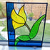 This Calla Lily is handmade using the Tiffany Technique. It is copper foiled & soldered with a 60/40 lead. I hand cut the coloured glass to create unique designs & gifts. The glass looks lovely when the light is shining through it creating wonderful colour shadows. The colours featured in the lily are Orange, green & pale yellow. The suncatcher is edged in hobby came to give it a firm edge. A orange ribbon hanger is attached to hang it in your window or on a wall. Approx 19x19cm.