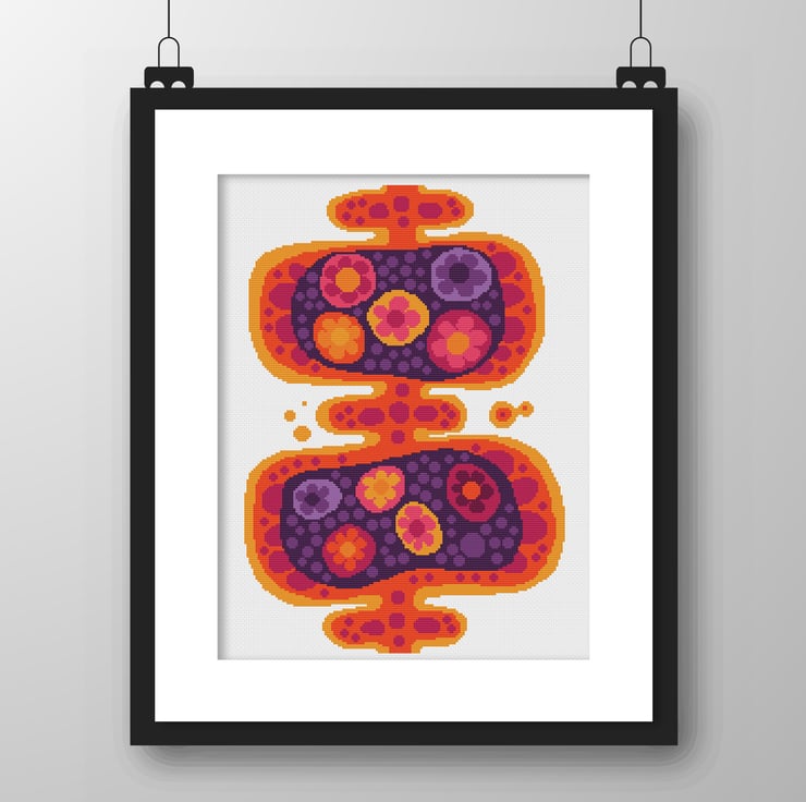Cross Stitch Pattern 70s Mid Century Retro Psychedelic Lava Bubble Flowers, Modern Wall Art, easy cross stitch design by Vivsters PDF counted chart 109